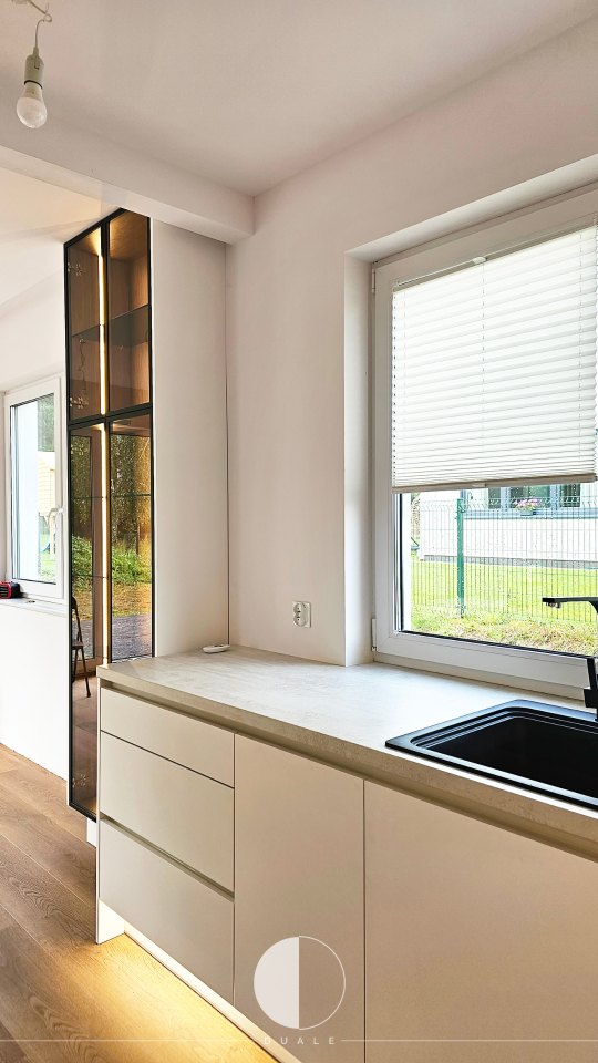 Chwilę nam zajęło sprecyzowanie, czego tak naprawdę potrzebujemy w tym wnętrzu. Zaczynaliśmy od ciemnych kolorów, przez neutralne, aż doszliśmy do bieli. Chcieliśmy uzyskać ciepłą i jasną kuchnię.