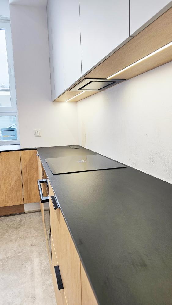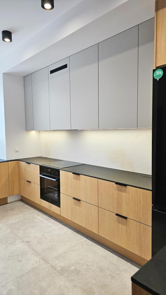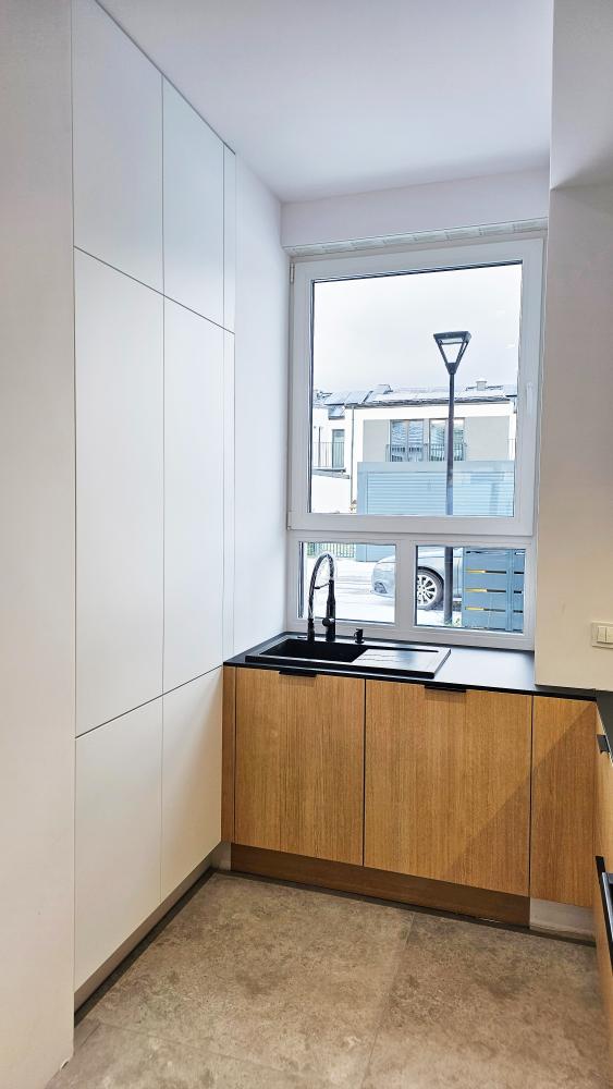 Byłam odpowiedzialna również za realizację tej kuchni na wymiar w mojej pracowni stolarskiej. Montaż przebiegł bez problemu.